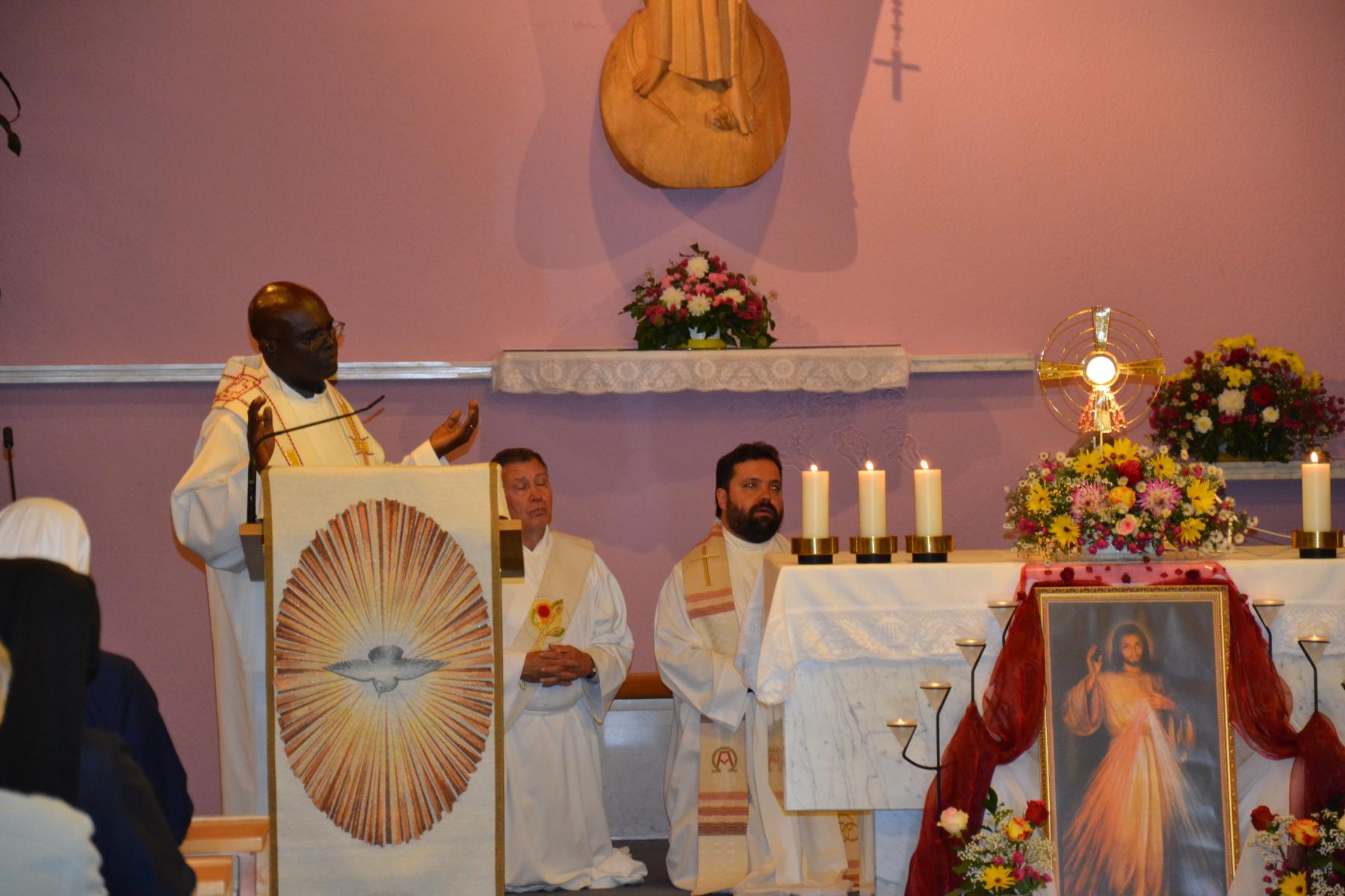 „Jesus lebt, er ist die Mitte unseres Lebens. Er ist die Barmherzigkeit, er ist Mitleid. Glauben wir an ihn!“, forderte P. Ubald seine Zuhörer auf und fügte hinzu: „Machen wir die Entscheidung, ihm zu gehören! Denn wir müssen in ihm sein, weil er unser Friede ist!“ Das Heilungsgebet beschloss den Gebetsnachmittag. Wir danken Jesus für sein Wirken unter uns und für die offensichtlichen Heilungen, von denen uns einige berichtet haben.