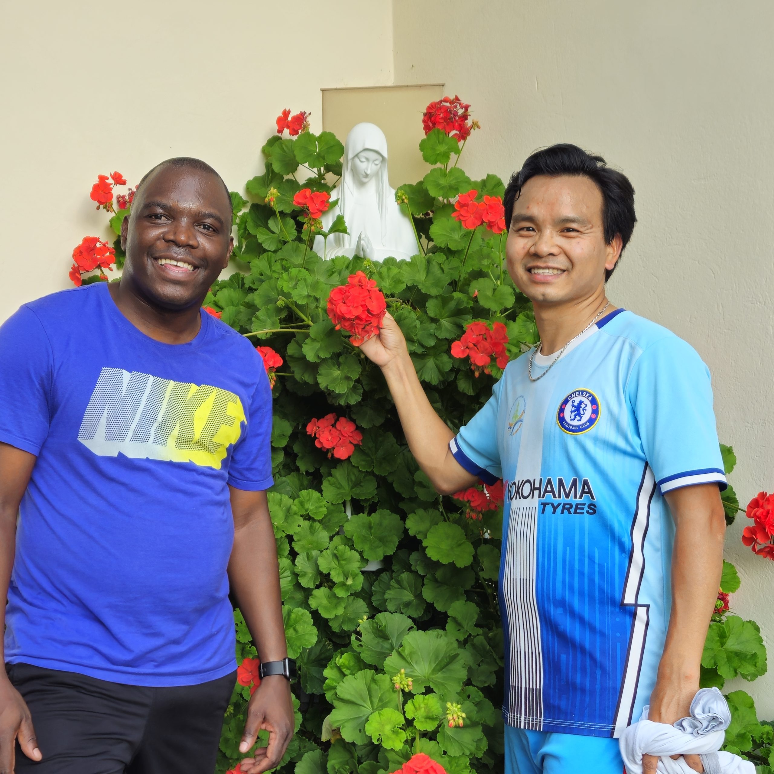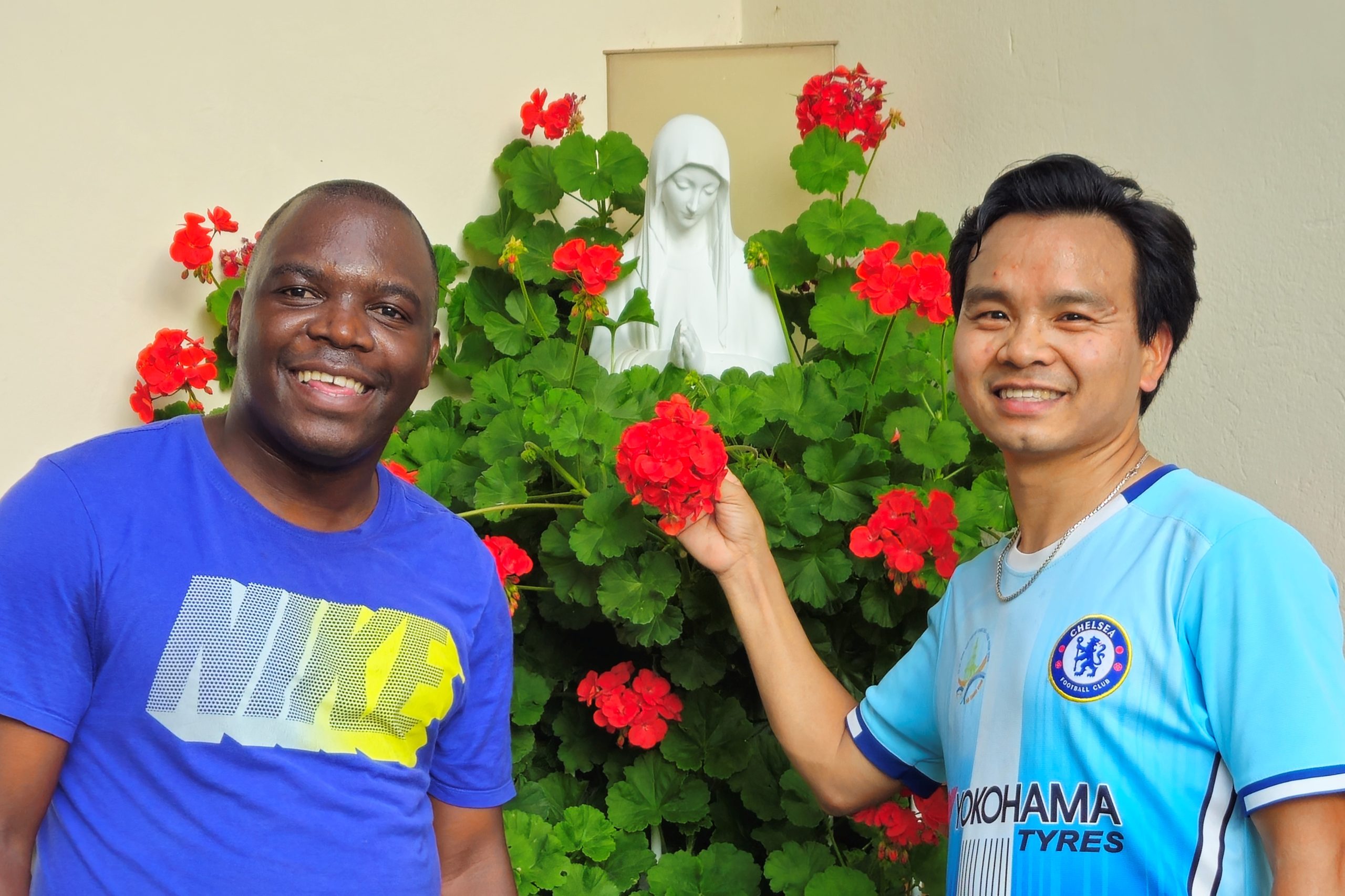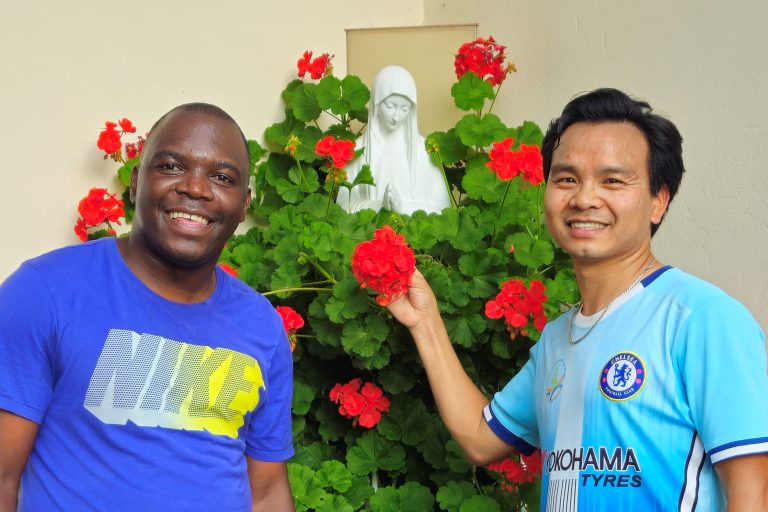 P. Jean Baptiste, der selbst aus Burundi stammt, machte unlängst beim Sporteln einen kleinen Abstecher und brachte uns P. Paul aus Vietnam mit.