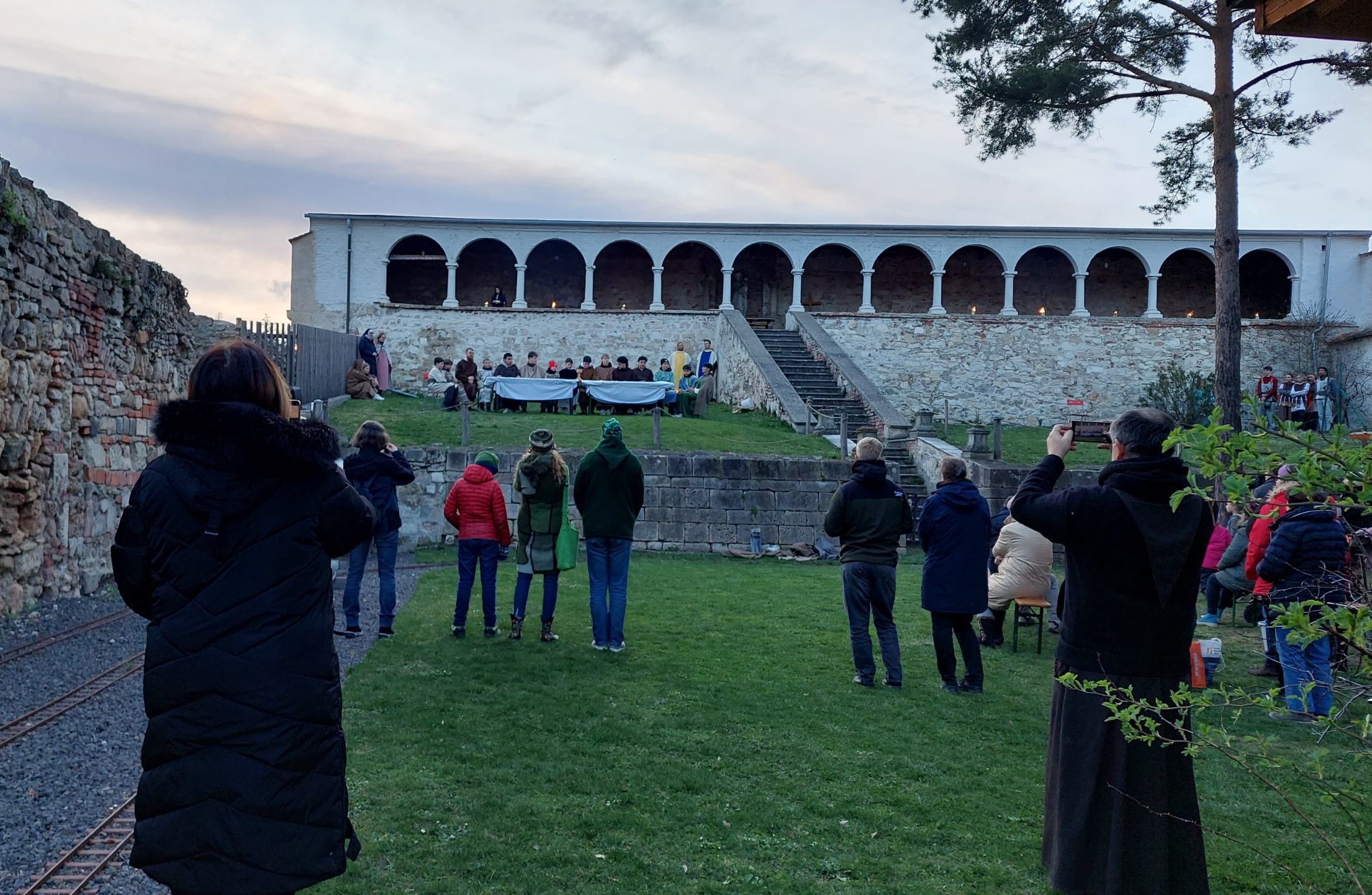 Am Montag in der Karwoche waren Sr. M. Teresa und Sr. M. Elisabeth bei den Kapuzinern in Wr. Neustadt. Dort findet mehrmals im Jahr ein Franziskanischer Grundkurs für Jugendliche statt. Diesmal war das Highlight ein von den jungen Teilnehmern vorbereitetes und dann am Abend im Klostergarten aufgeführtes Passionsspiel.