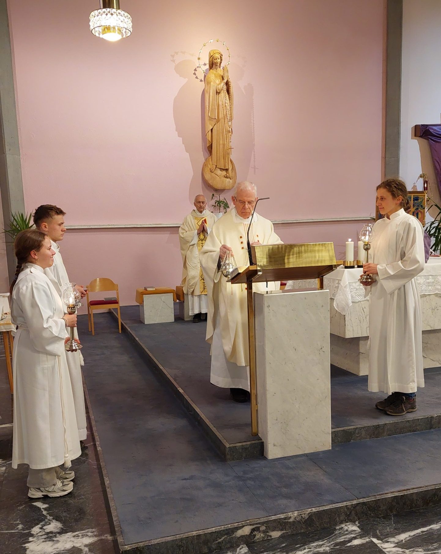 Am Gründonnerstag feierten wir um 16 Uhr die hl. Messe vom Letzten Abendmahl, hielten danach Anbetung und lasen gemeinsam die Abschiedsreden Jesu aus dem Johannesevangelium.