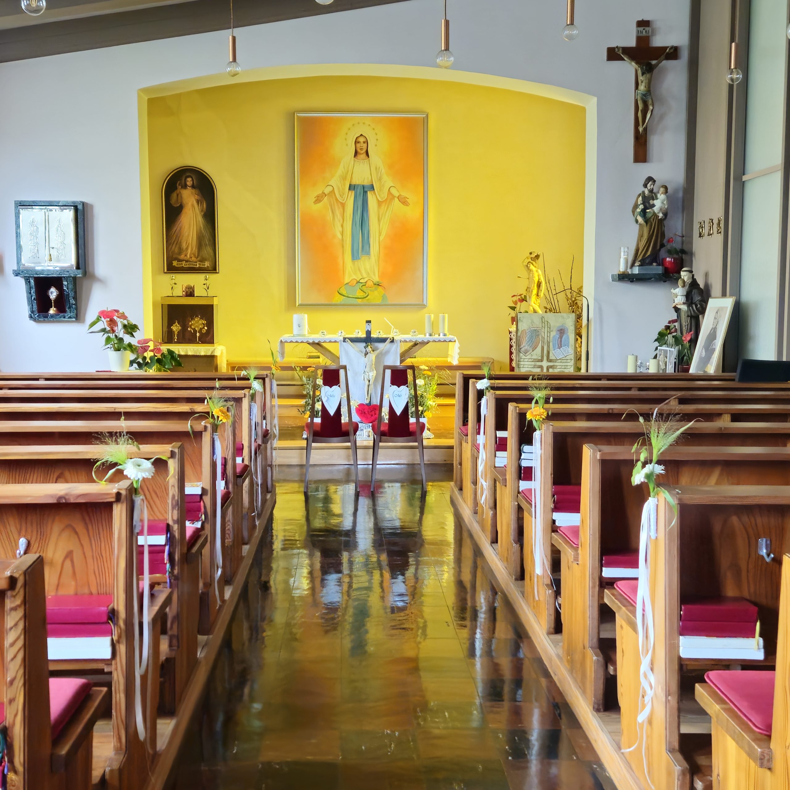 Früher gab es öfters Hochzeiten in unserer Kapelle im Stiftingtal. Am 28.09.2024 haben sich hier auch Susanne und Georg das Ja-Wort gegeben. Susanne hat früher gelegentlich den Musikdienst bei Veranstaltungen wie der Lourdesfeier, Abend des kostbaren Blutes, Gebetsabende um geistliche Berufungen,... übernommen und ist auf diese Weise schon seit Jahren mit der Vorauer Kapelle verbunden.