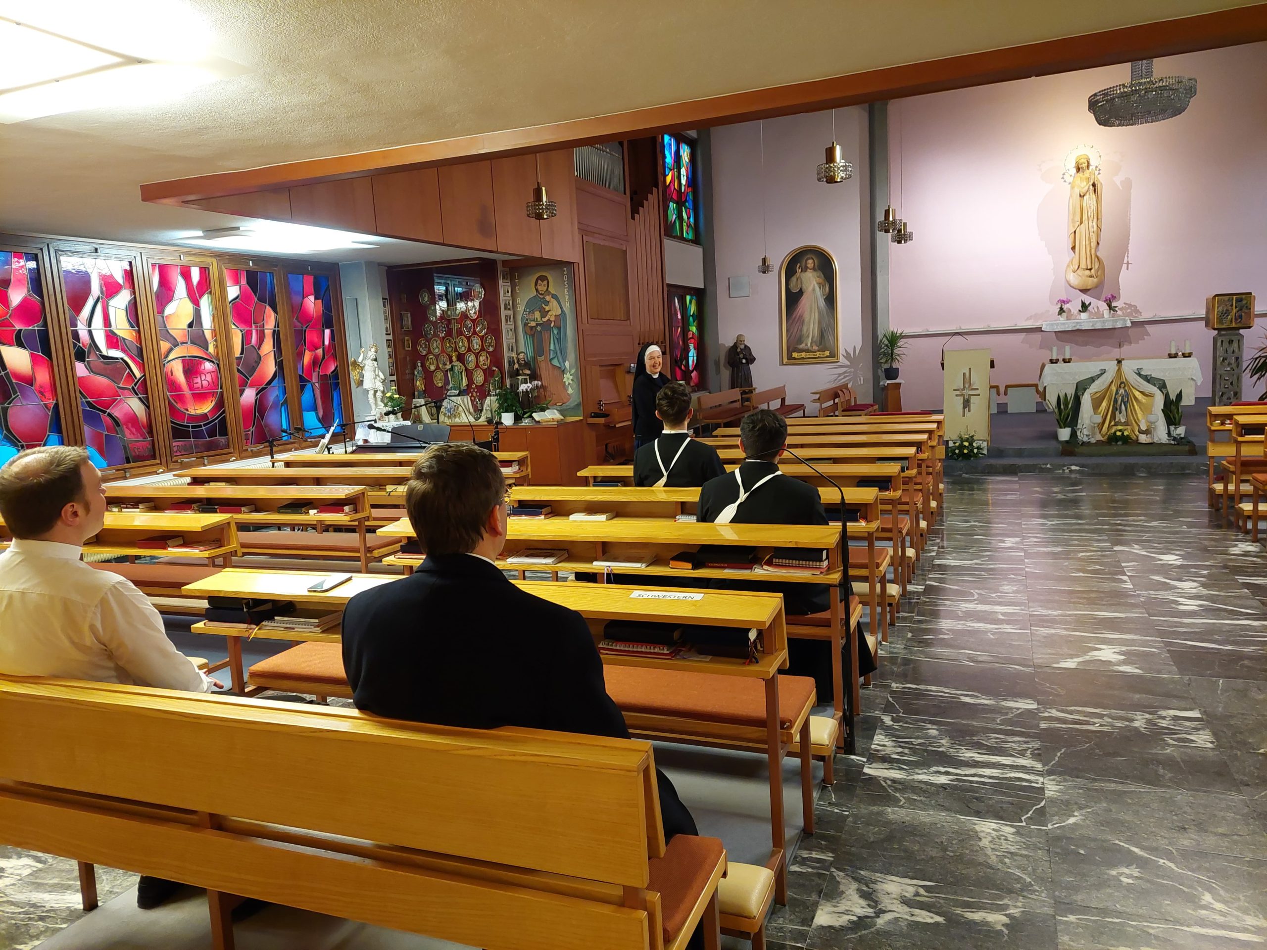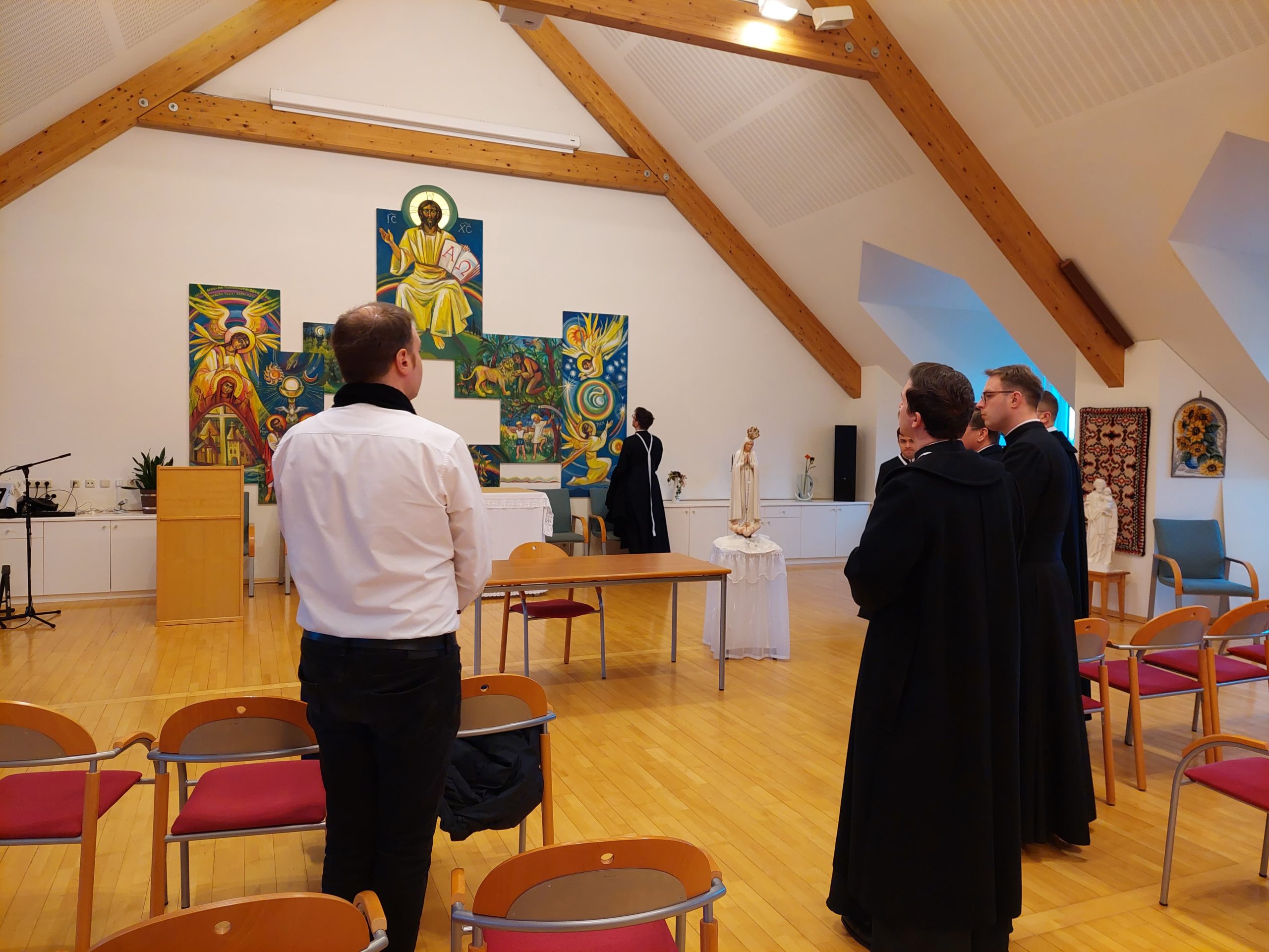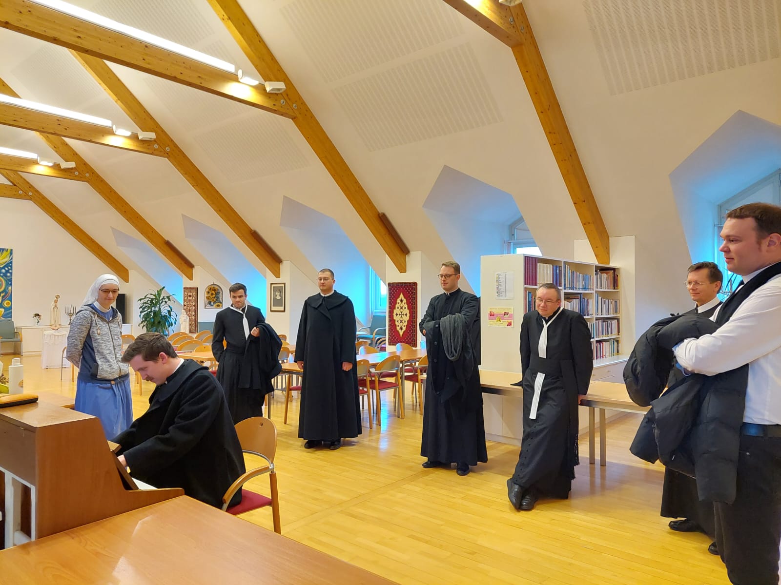 Neben vielen (ordens-)geschichtlichen und kulturellen Eindrücken besuchten die jungen Chorherren auch unsere Gemeinschaft. Wir gaben einen kleinen Einblick in unser Gründungscharisma, die Geschichte unserer Gemeinschaft und das MKH. Im Anschluss gab es ein Kennenlernen und Austauschen bei Kaffee und Kuchen.