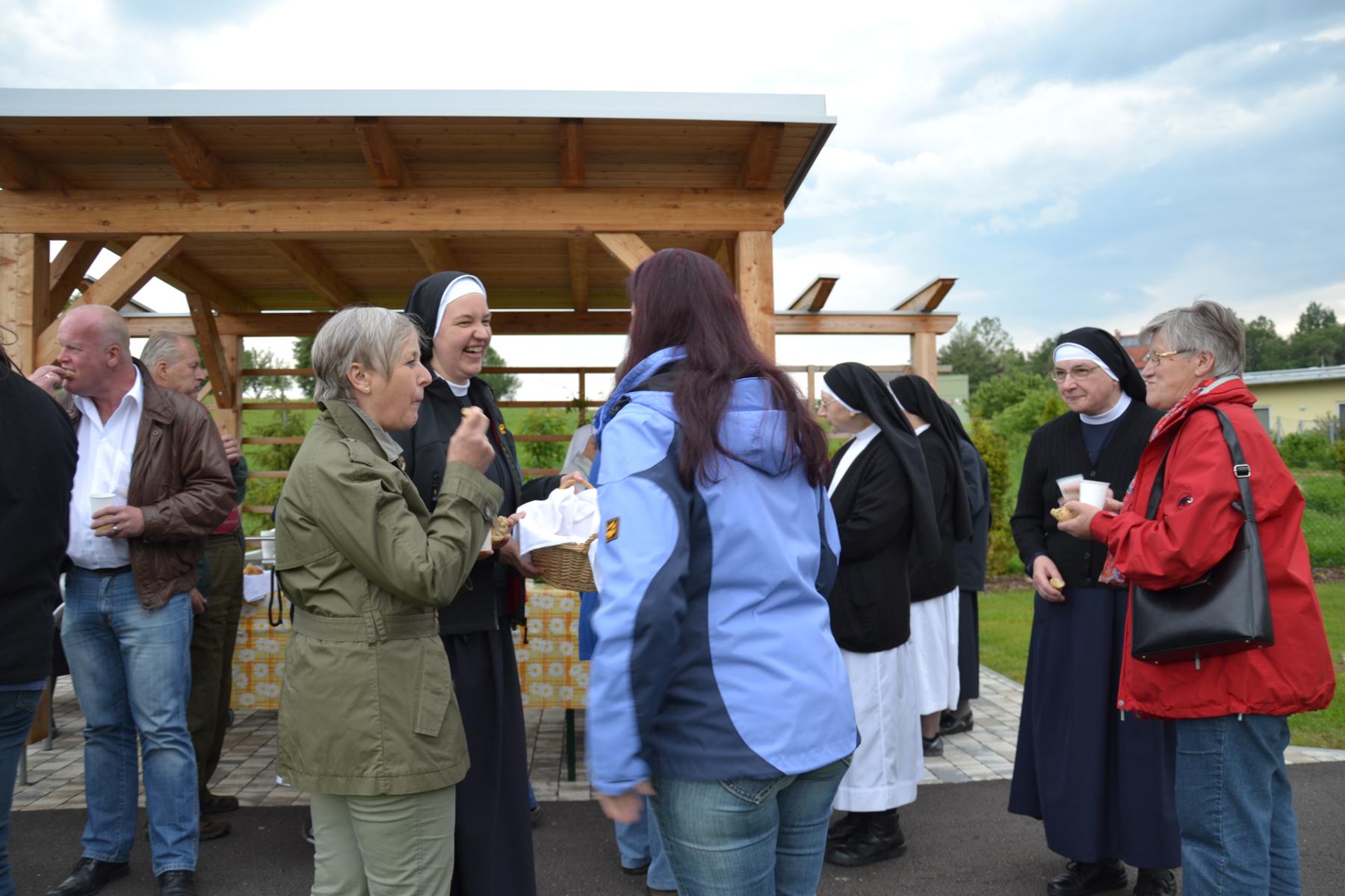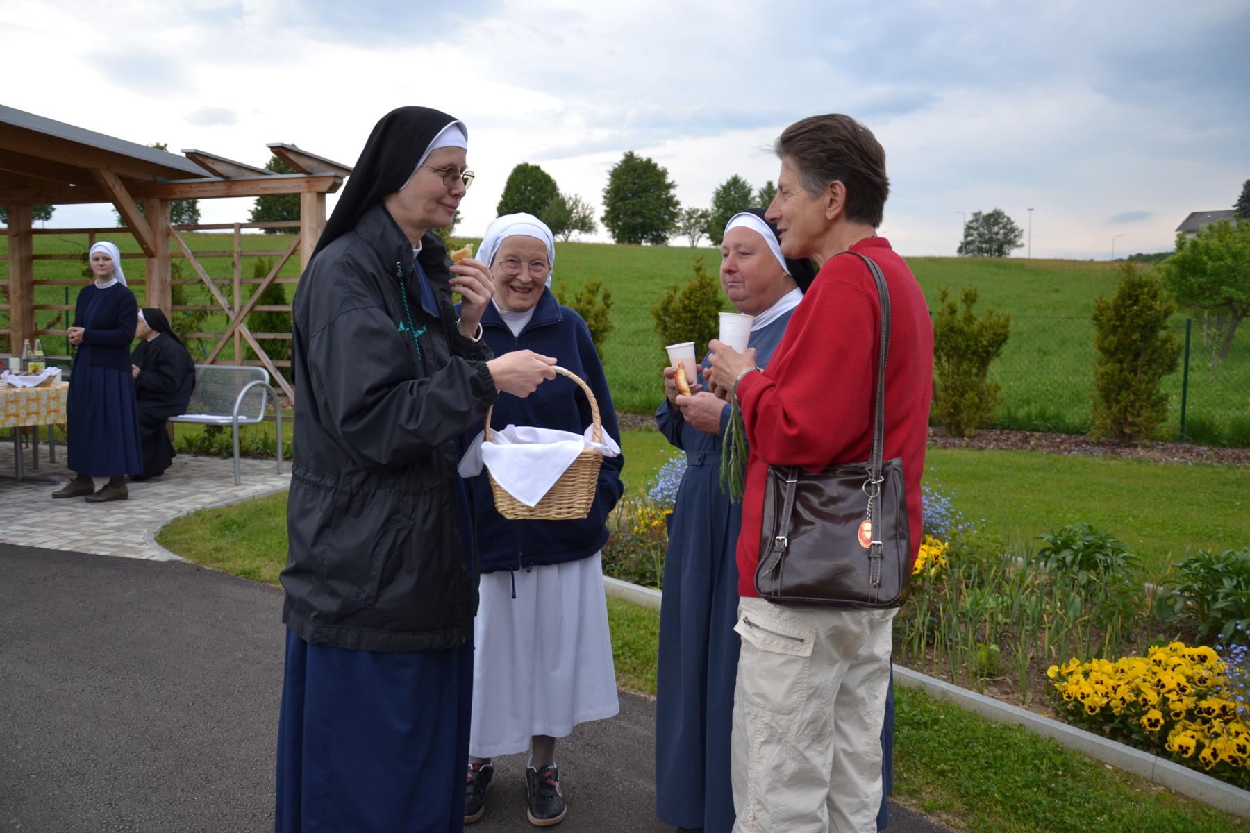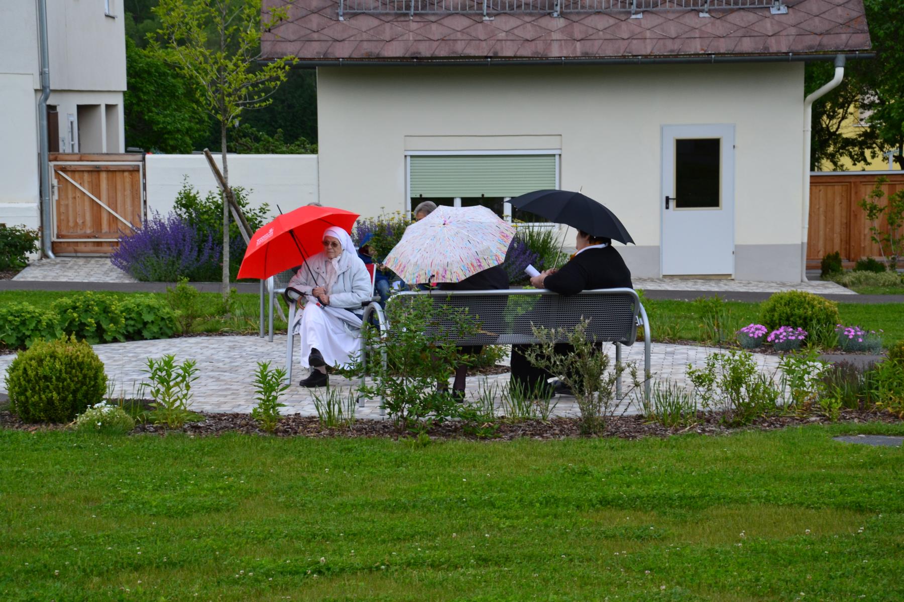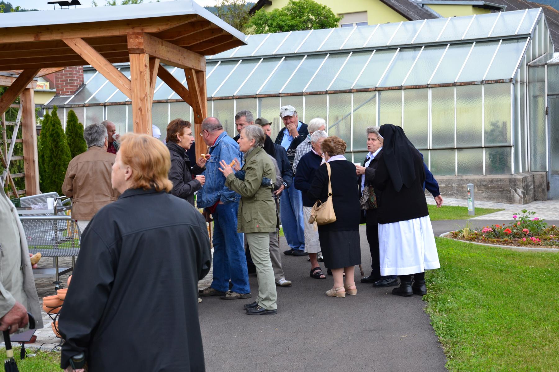 Nachdem das Wetter ausgehalten hat, konnte die Maiandacht bei einer kleinen Agape im Garten unterhaltsam ausklingen.