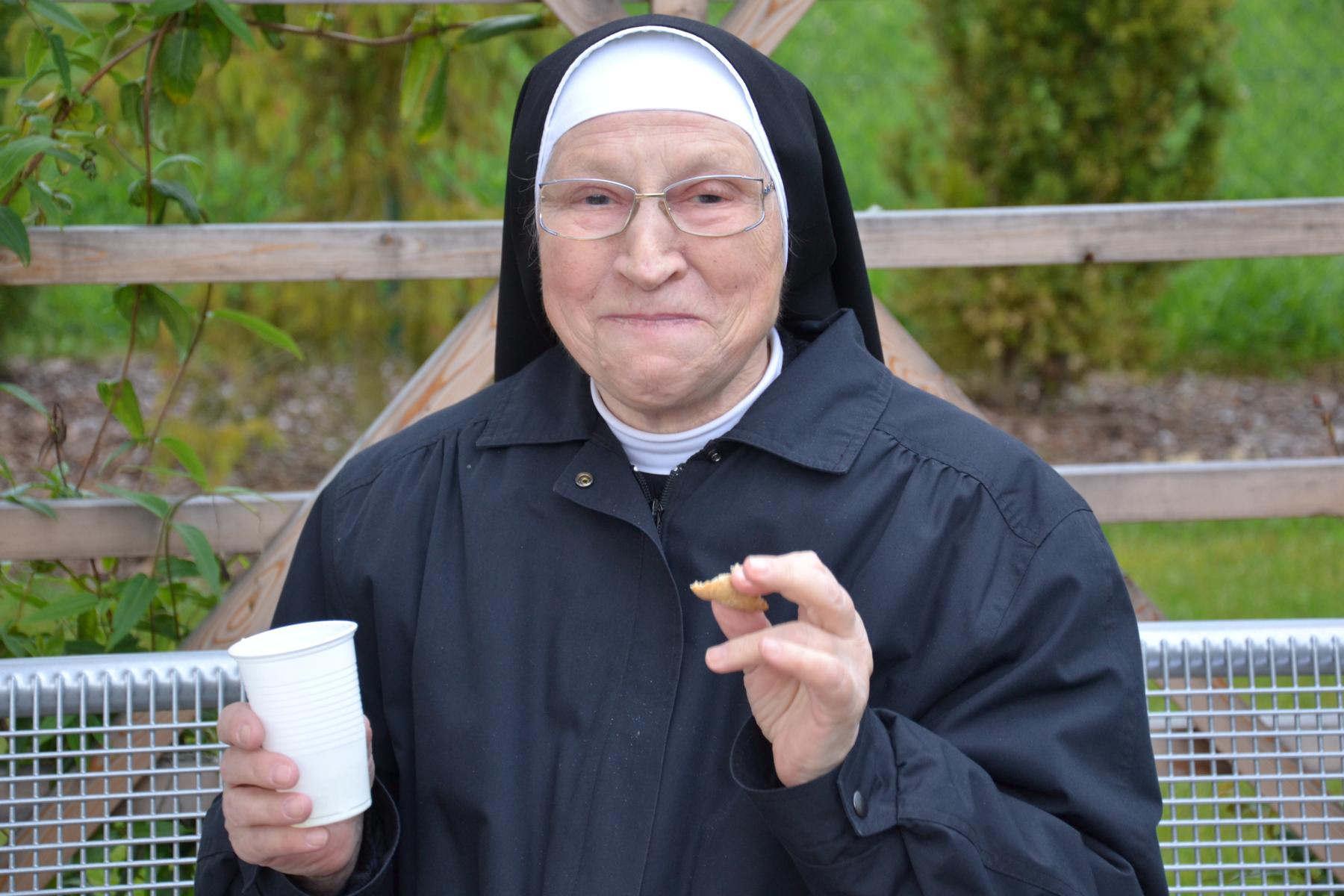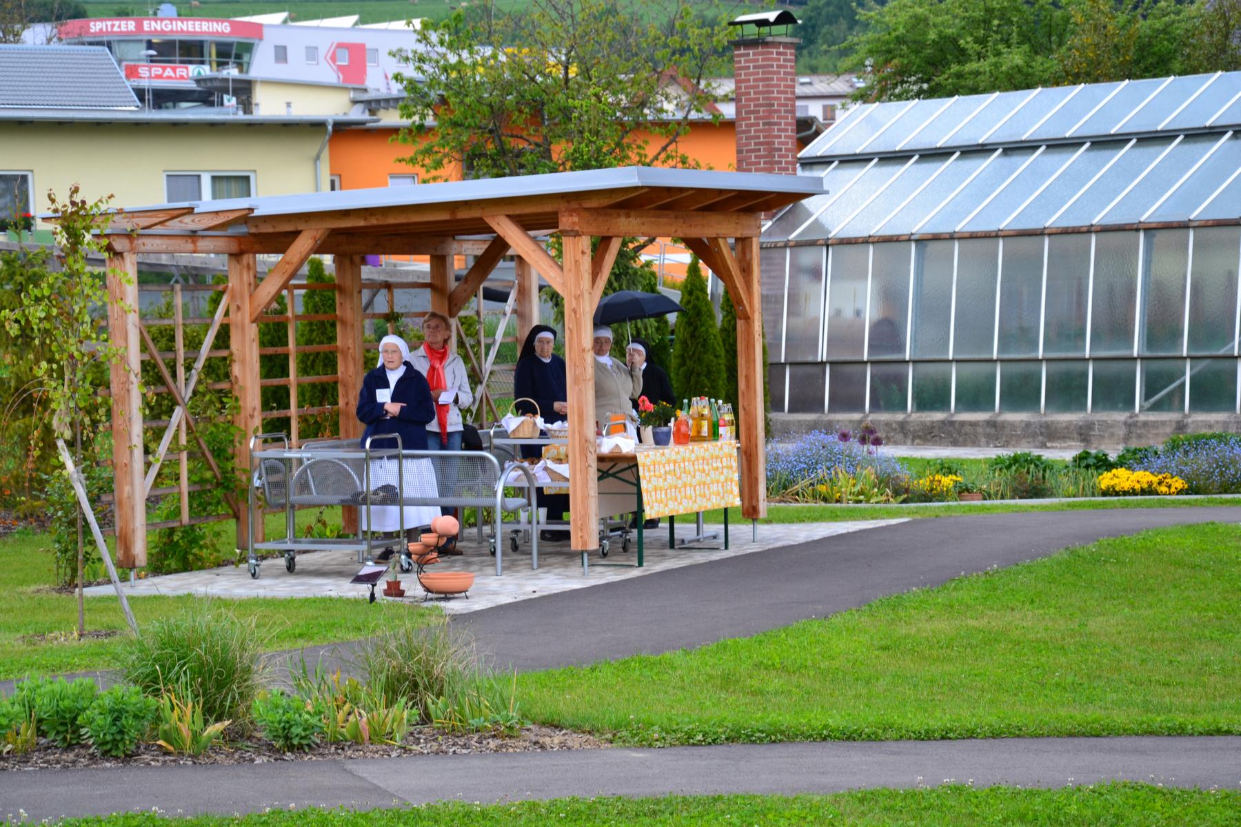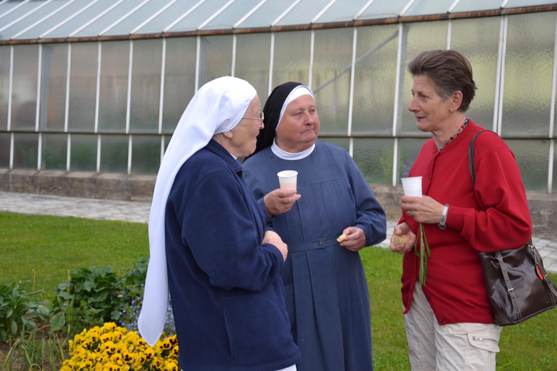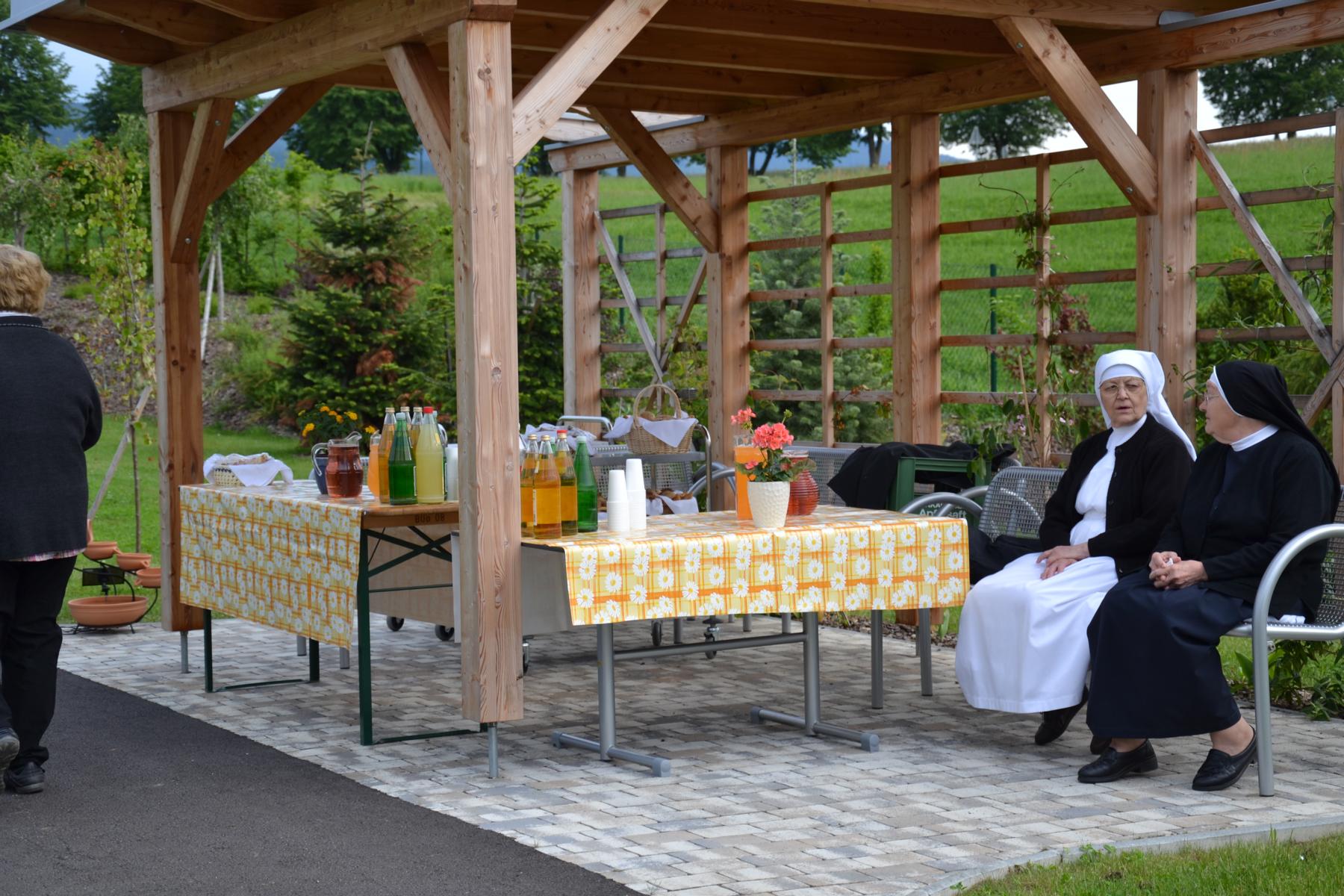 Nachdem das Wetter ausgehalten hat, konnte die Maiandacht bei einer kleinen Agape im Garten unterhaltsam ausklingen.