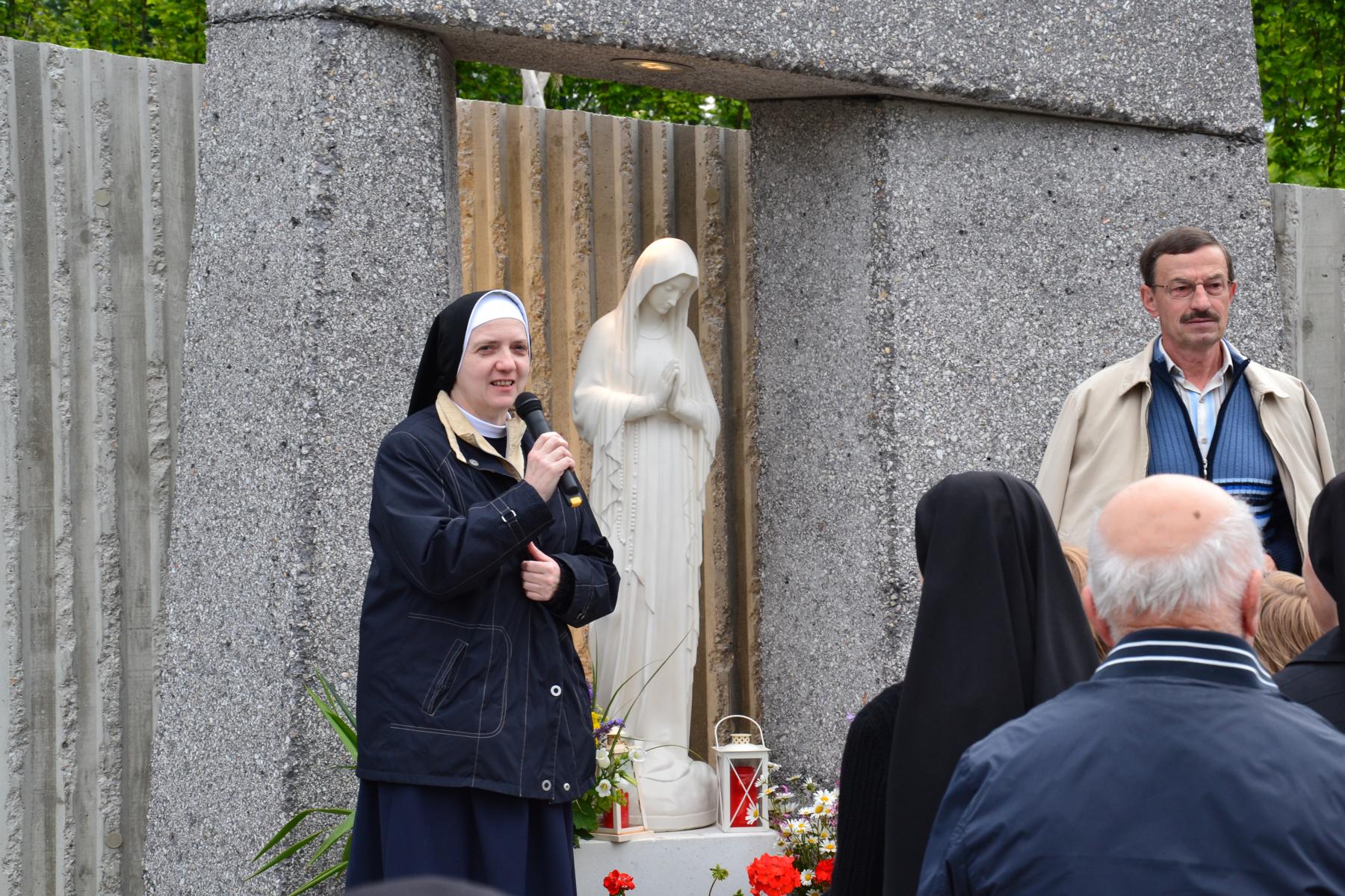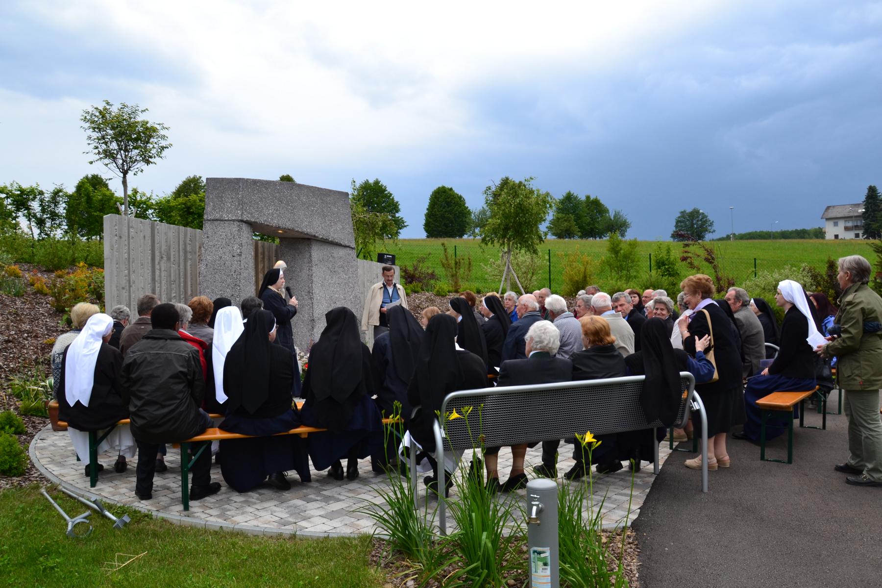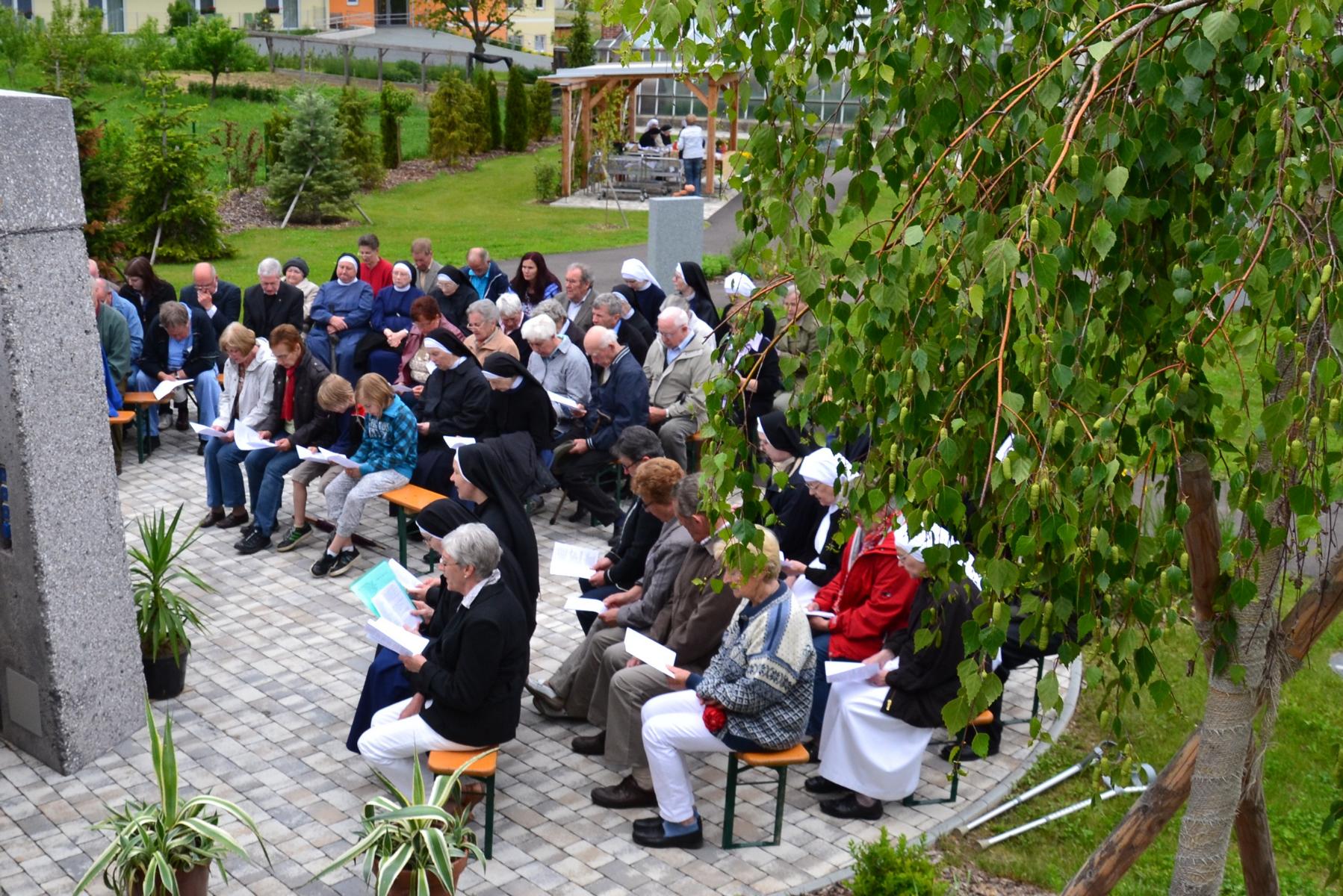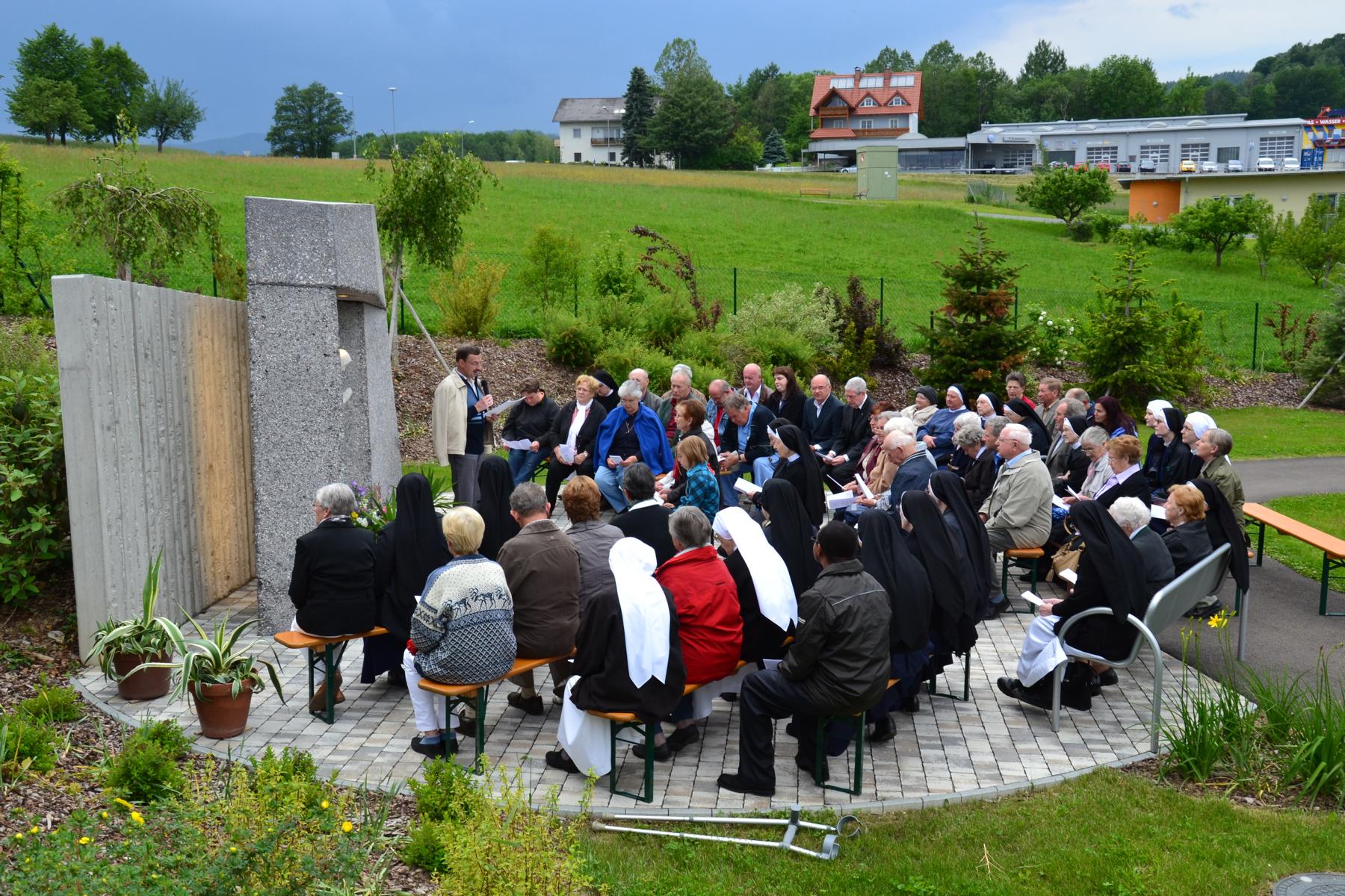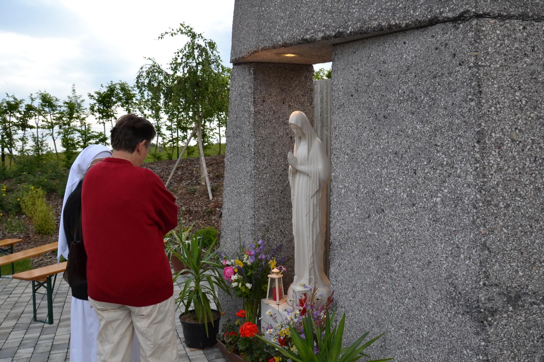 Trotz des wankelmütigen Wetters hatten wir Glück und konnten die alljährliche Maiandacht mit den Bewohnern der Badsiedlung im Freien abhalten. Etwa 80 Gläubige versammelten sich in unserem Klostergarten bei der Mariengrotte, bei der „Jungfrau der Armen“ (Banneux).
