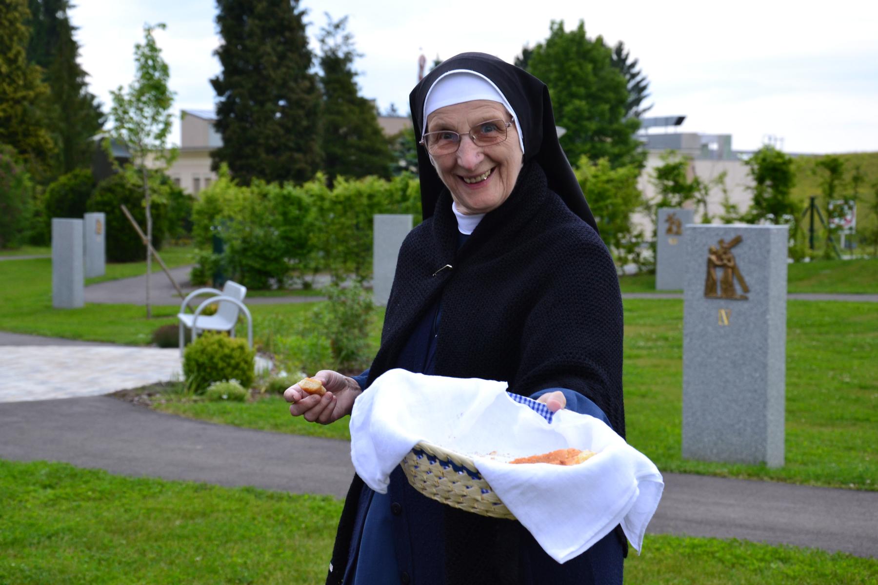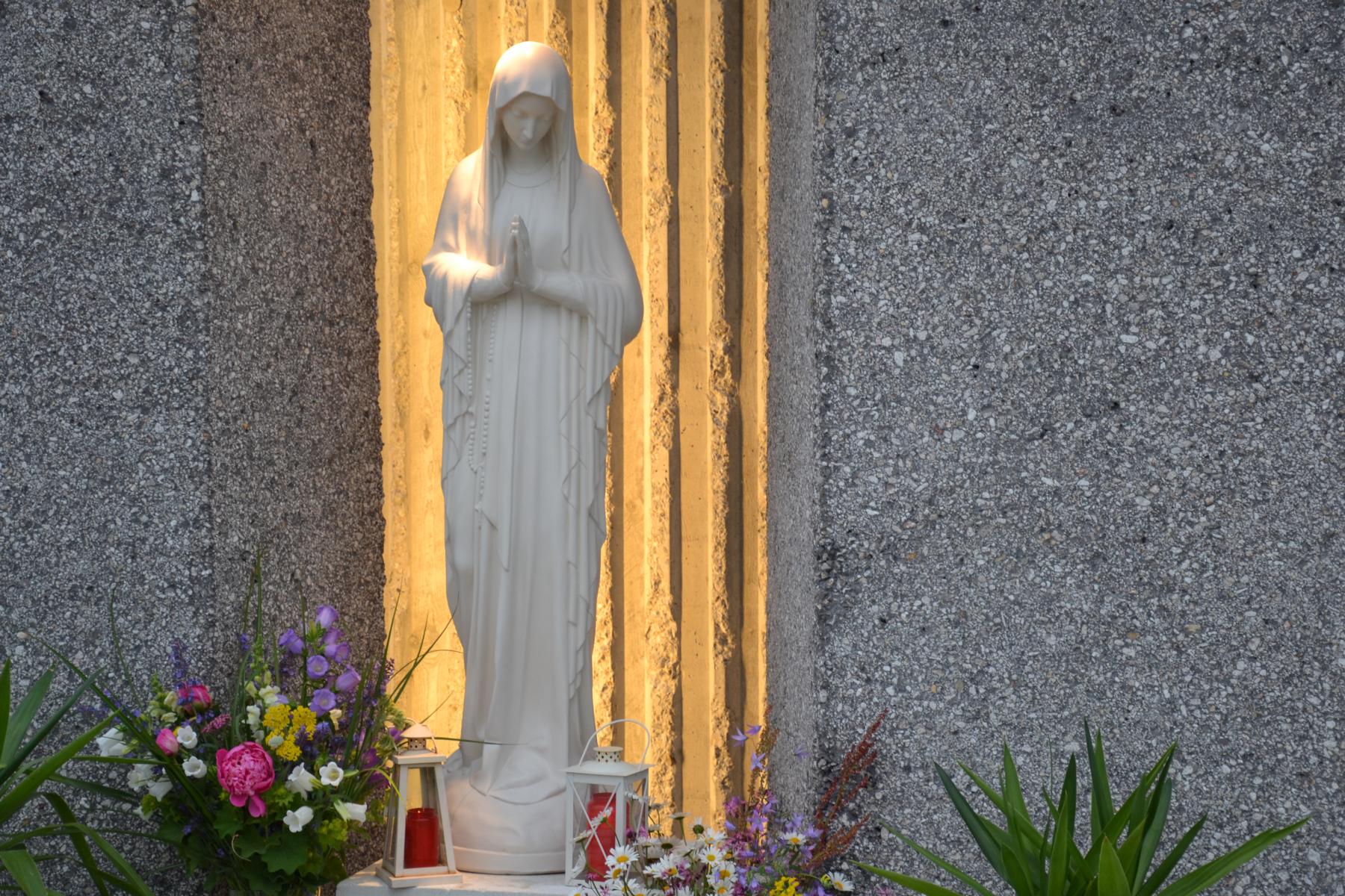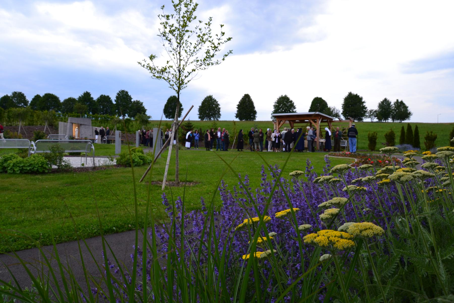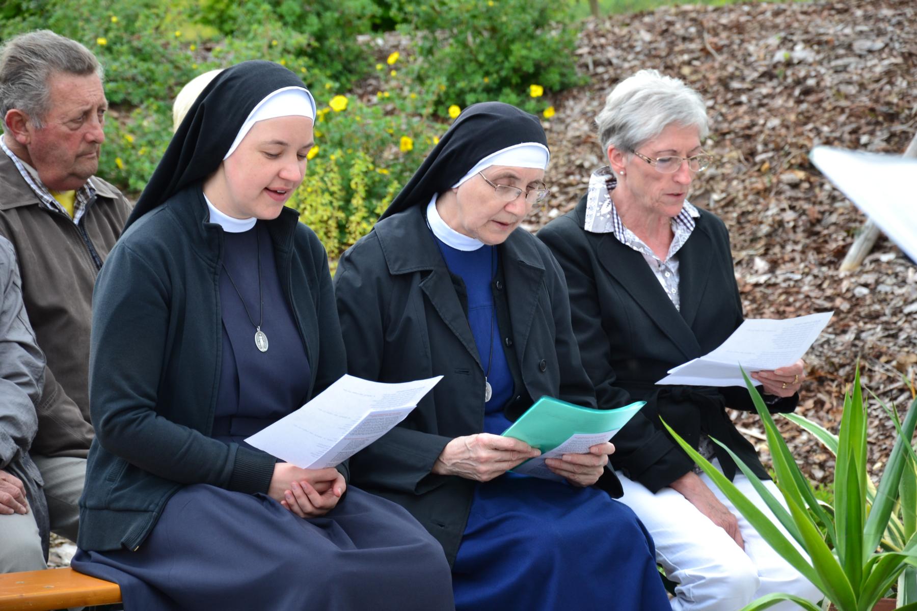 Trotz des wankelmütigen Wetters hatten wir Glück und konnten die alljährliche Maiandacht mit den Bewohnern der Badsiedlung im Freien abhalten. Etwa 80 Gläubige versammelten sich in unserem Klostergarten bei der Mariengrotte, bei der „Jungfrau der Armen“ (Banneux).