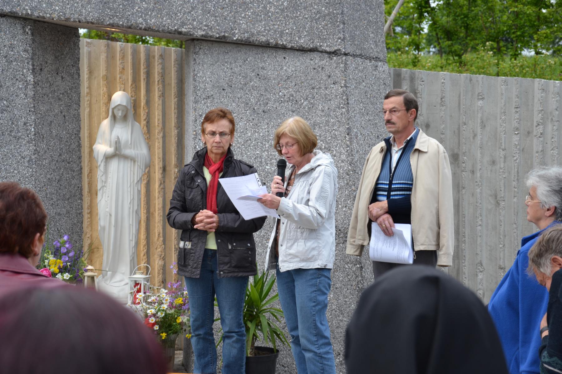 Mit den Worten: „Wenn wir einstimmen ins Magnifikat, in den Lobgesang Marias, dann stimmen wir ein in den großen Chor der Glaubenden: Unser Gott macht das Kleine groß, unser Gott ist ein treuer Gott, unser Gott ist ein Befreier-Gott!“ Nach der kurzen Ansprache wechselten sich Marienlieder und Gebet ab.