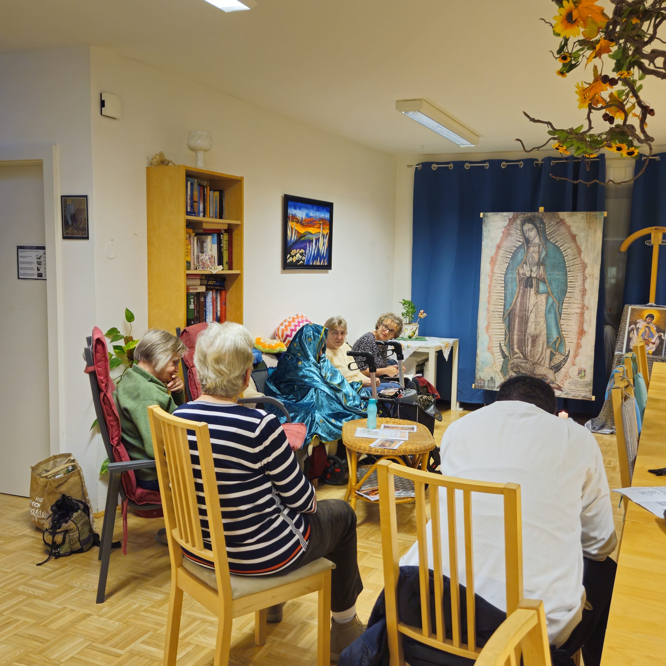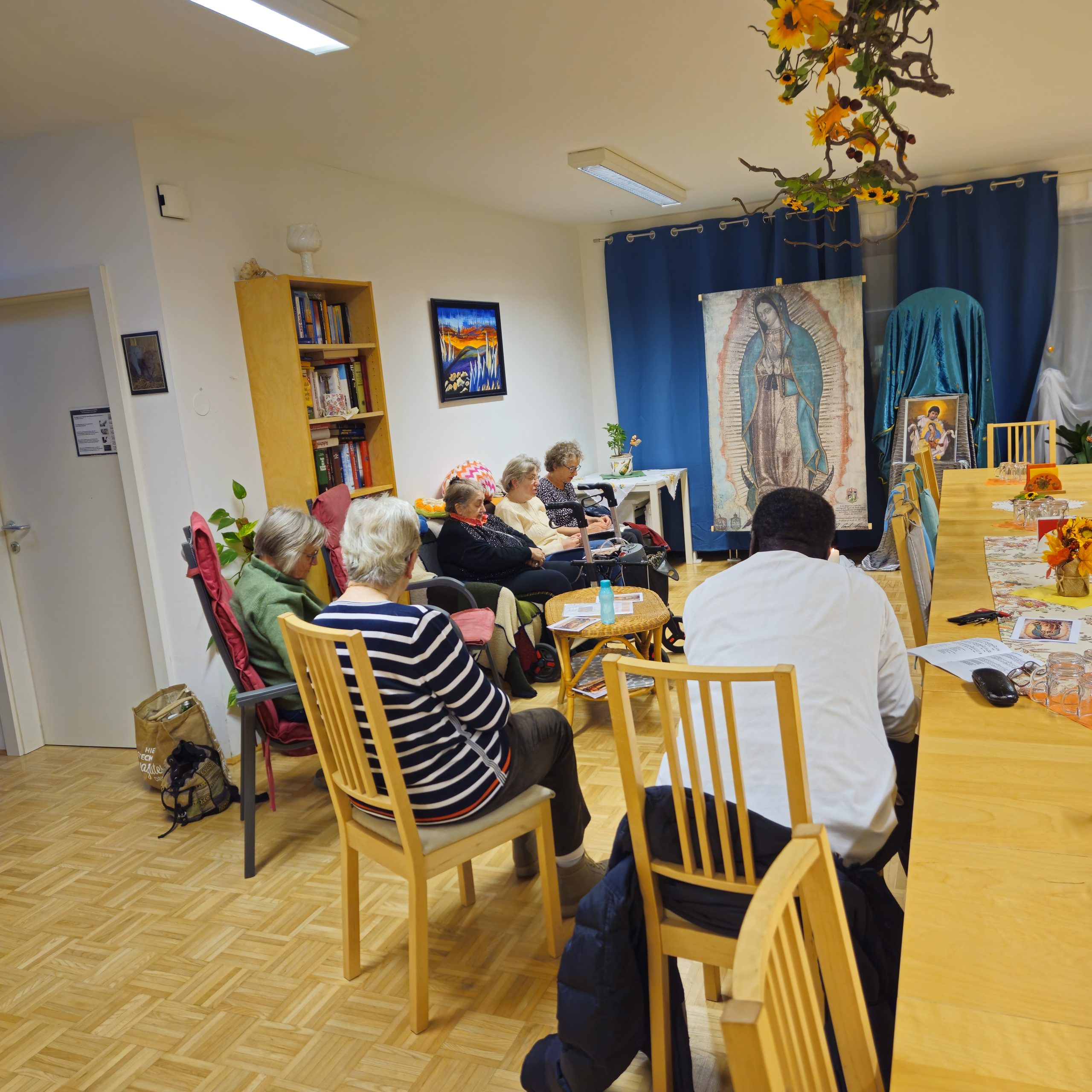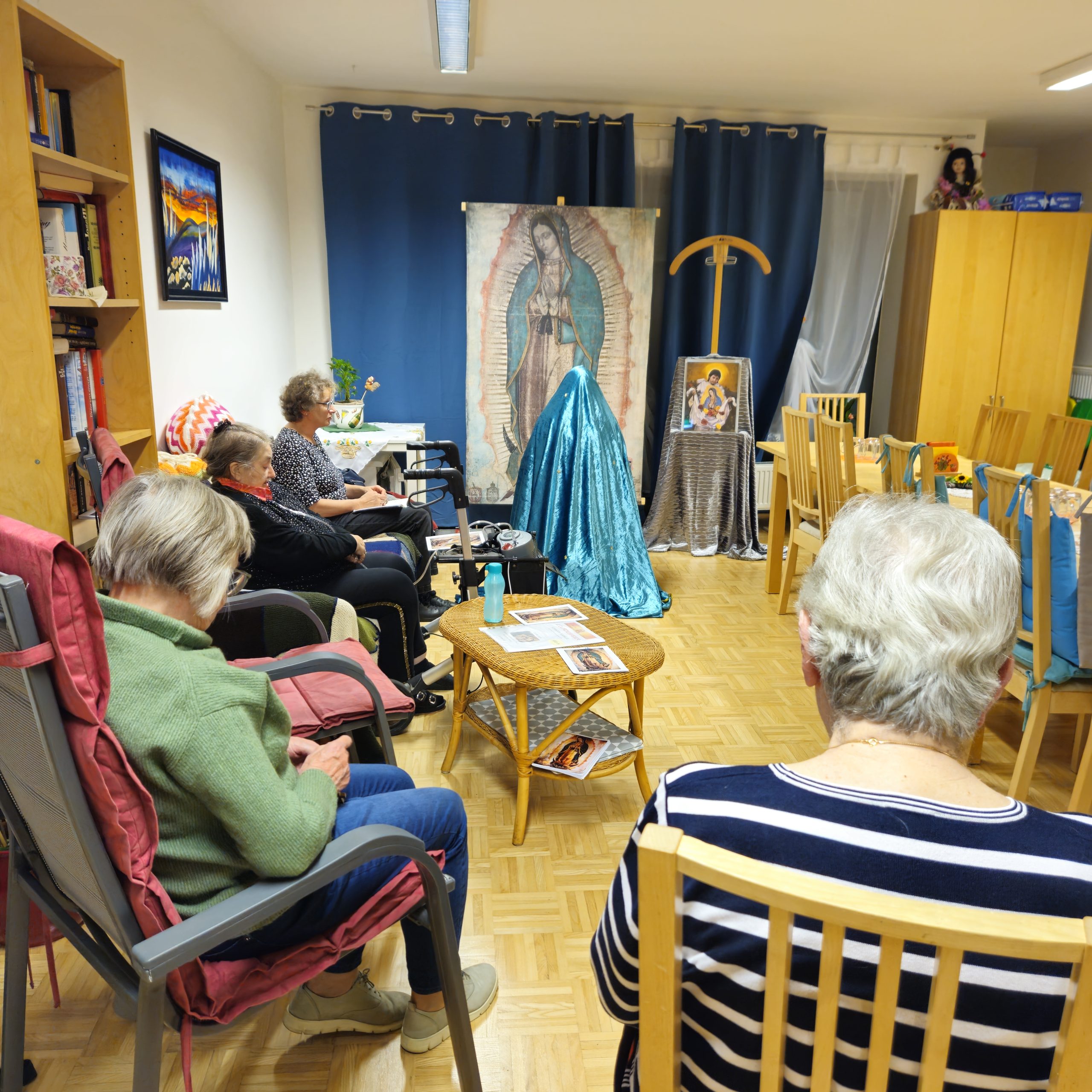Vom Grazer Stützpunkt aus betreuen wir im Zuge des Mantelapostolates auch eine Gebetsgruppe in der Pfarre Kumberg. Nach anfänglichen Treffen in der Pfarrkirche und späteren Guadalupeabenden im Pastoralraum in Kumberg, sind wir jetzt der Einladung gefolgt und haben uns heute im Gemeinschaftsraum im "Haus der Lebensfreude" (Betreutes Wohnen) in unmittelbarer Nähe zur Kumberger Pfarrkirche getroffen. Wir haben uns hier sehr wohlgefühlt, sodass wir gerne wiederkommen werden.