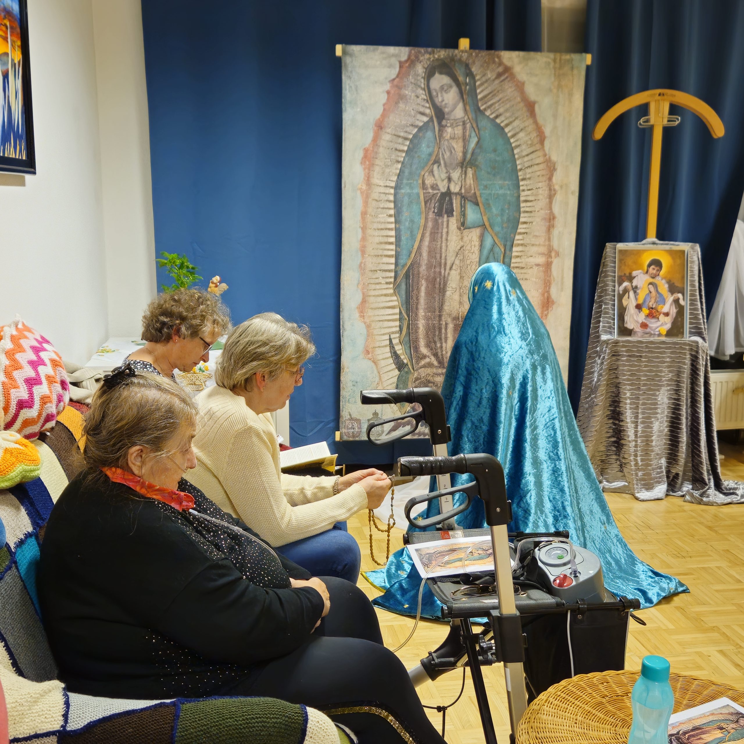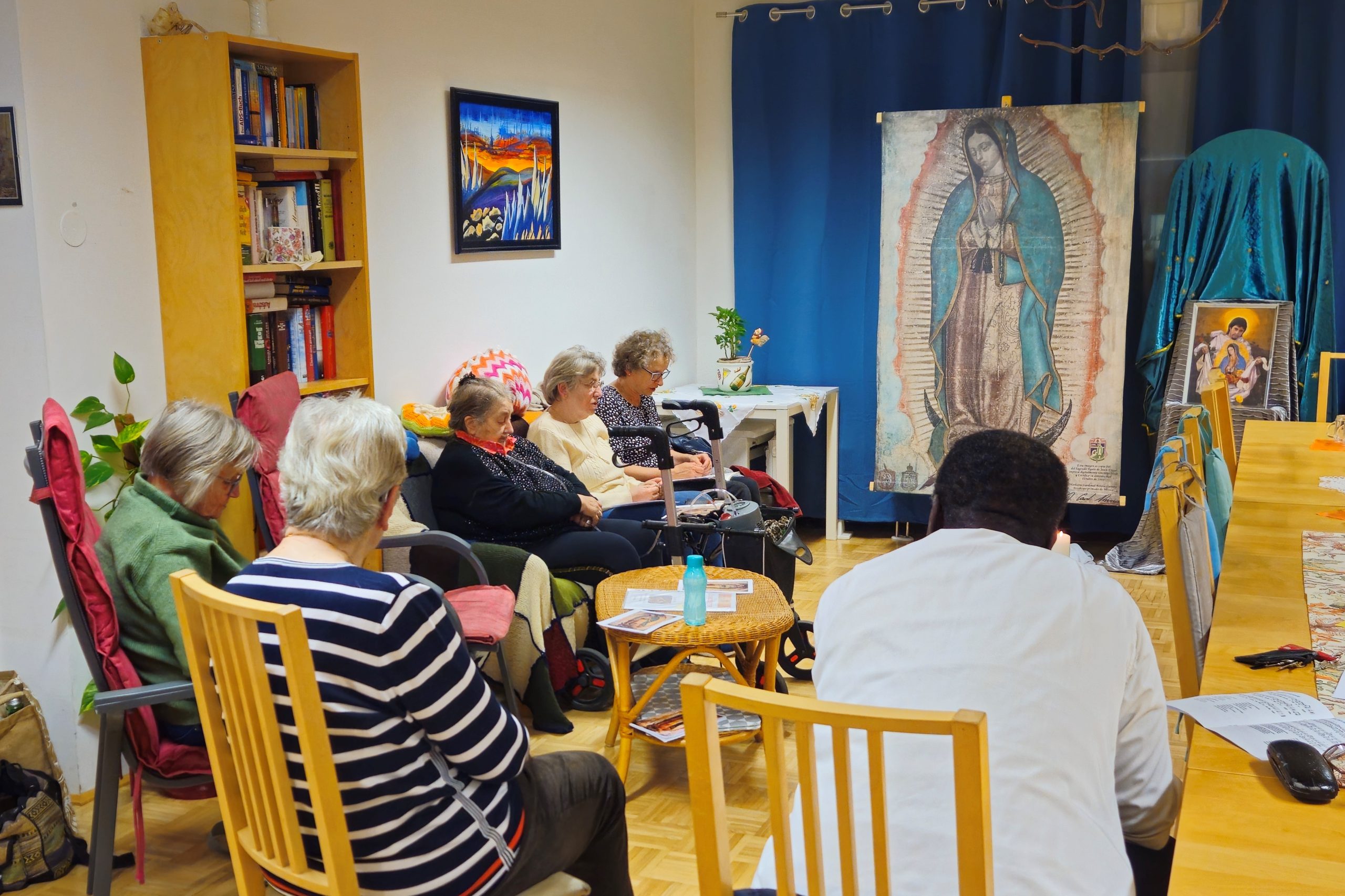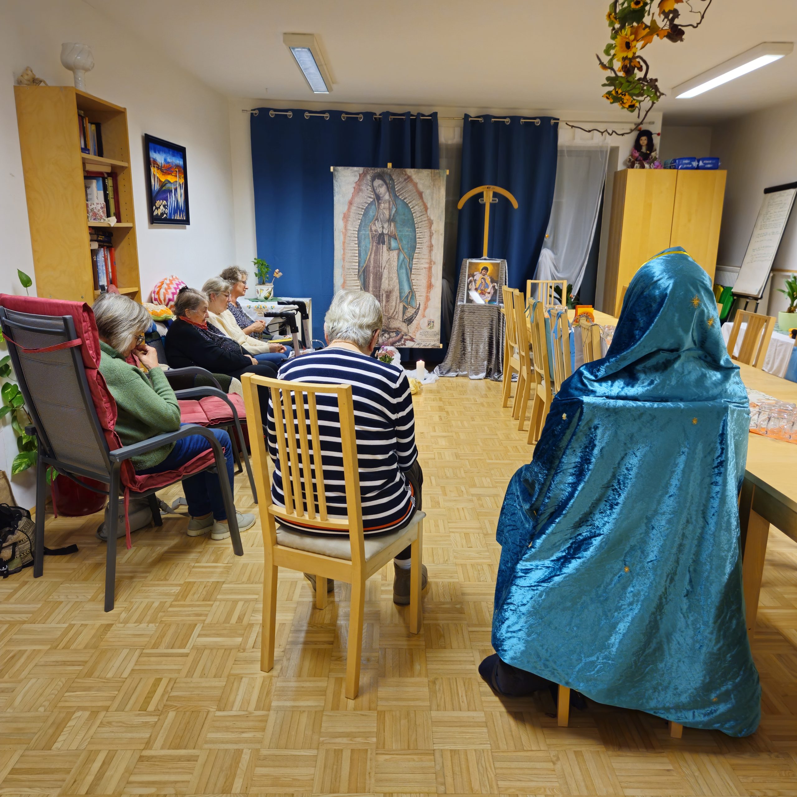 Vom Grazer Stützpunkt aus betreuen wir im Zuge des Mantelapostolates auch eine Gebetsgruppe in der Pfarre Kumberg. Nach anfänglichen Treffen in der Pfarrkirche und späteren Guadalupeabenden im Pastoralraum in Kumberg, sind wir jetzt der Einladung gefolgt und haben uns heute im Gemeinschaftsraum im "Haus der Lebensfreude" (Betreutes Wohnen) in unmittelbarer Nähe zur Kumberger Pfarrkirche getroffen. Wir haben uns hier sehr wohlgefühlt, sodass wir gerne wiederkommen werden.
