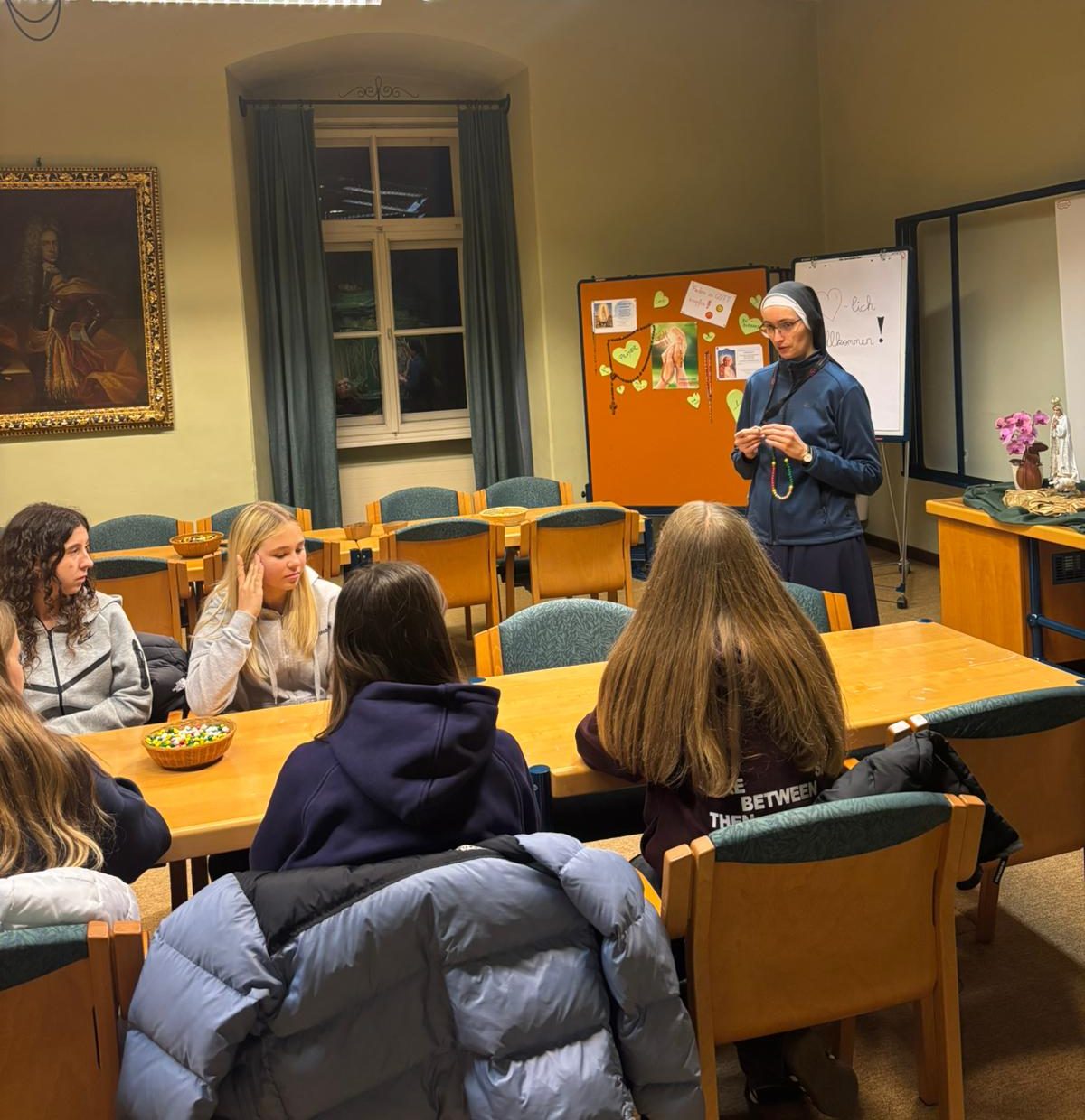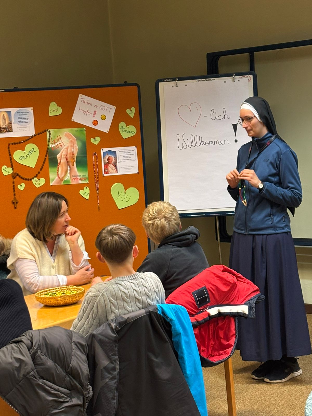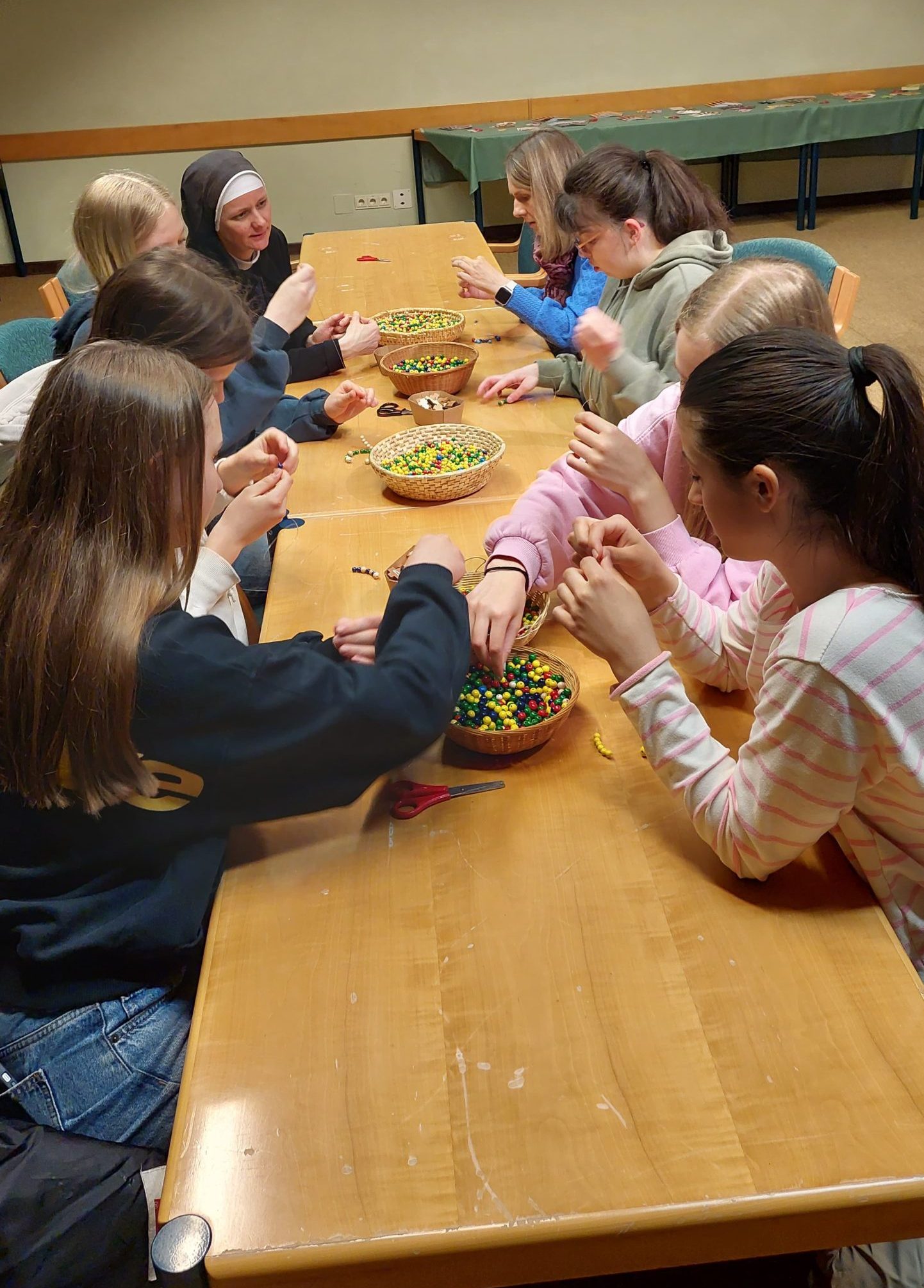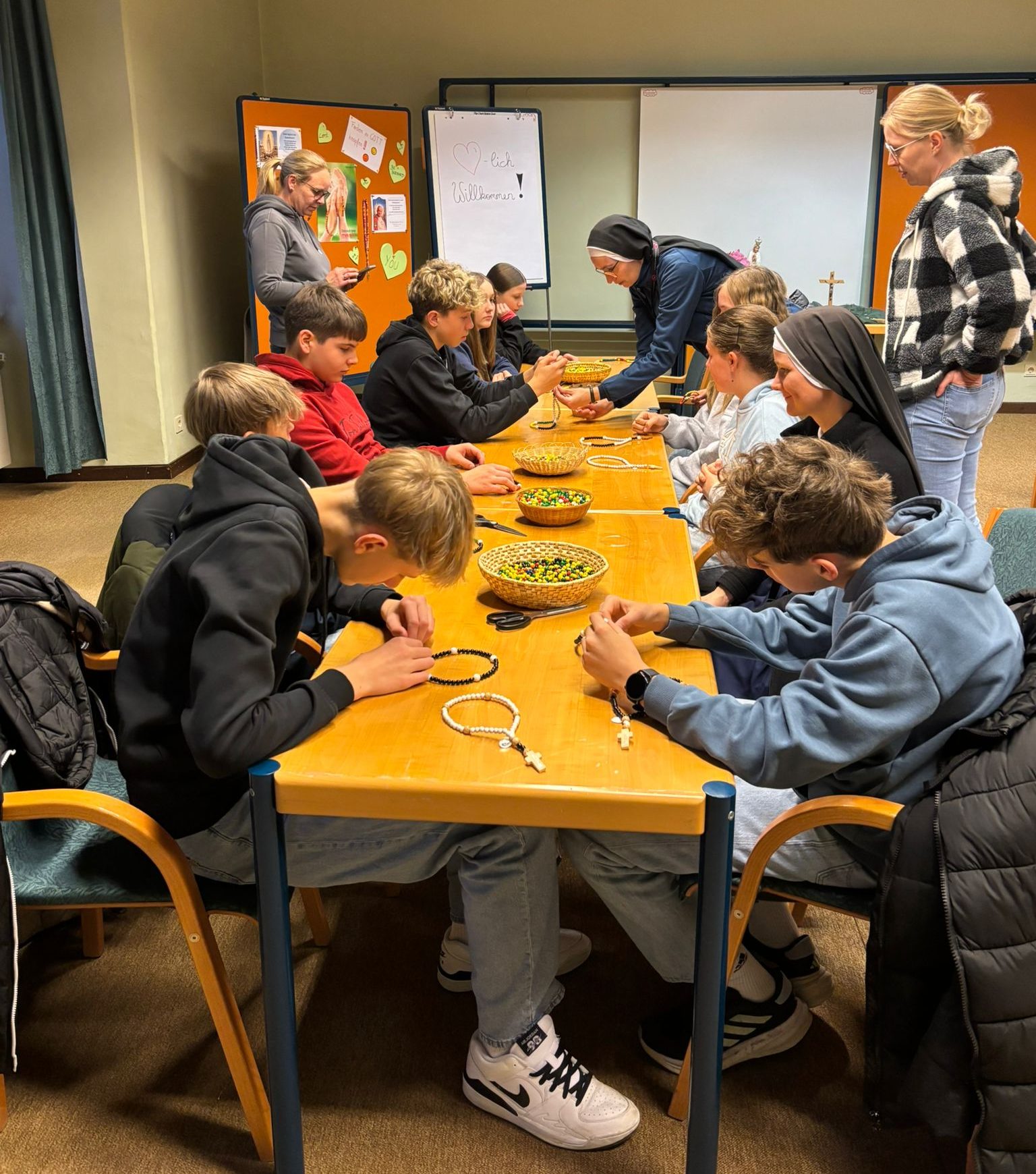 Wir Schwestern leiteten den Workshop „Faden zu GOTT knüpfen“. Die Mädchen und Burschen fertigten nach einer kurzen Katechese ihren eigenen Rosenkranz an. Es macht immer wieder große Freude, mit Jugendlichen zu arbeiten und sie auf ihrem persönlichen Glaubensweg zu begleiten.