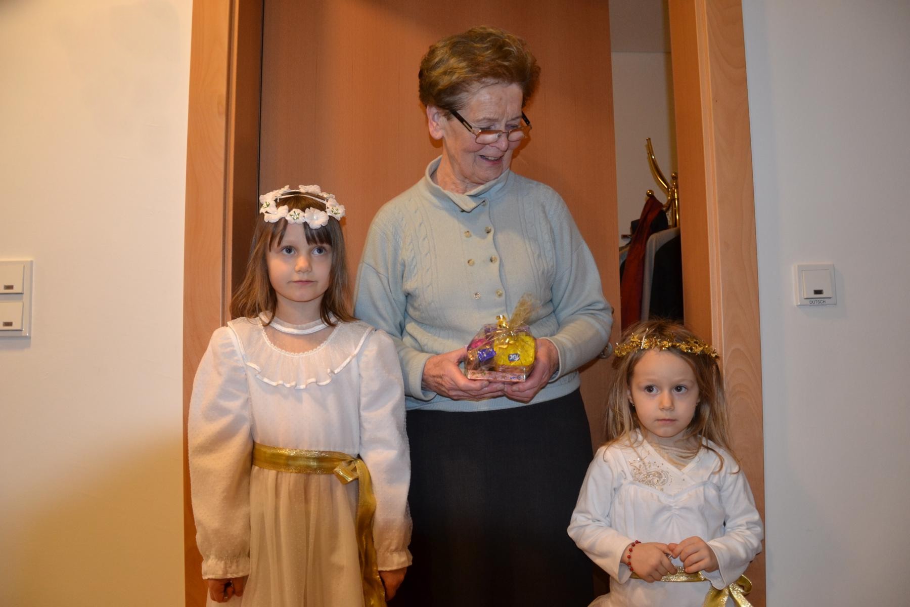Seit einigen Jahren begleiten uns auf diesem weihnachtlichen Rundgang Kinder, die wie kleine Weihnachtsengel durch Zimmer und Gänge schwirren, um den Patienten und Mitarbeitern kleine Geschenke zu überreichen. Auf diese Weise versuchen wir jedes Jahr unseren Patienten, welche die Weihnachtstage im Spital verbringen müssen, ein bisschen Weihnachtsstimmung zu vermitteln. Die Päckchen sind Ausdruck unserer Verbundenheit mit den Kranken, die ihre eigentlichen Wurzeln im Gebet findet.
